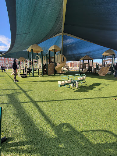 Covered play areaFenced and gatedAge-appropriate zonesTurf surfacingConvenient restroomsGood shade