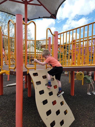 PARK365 is a highly praised, fully fenced playground celebrated for its exceptional accessibility, welcoming children of all ages and abilities. Visitors enjoy the variety of play areas, including a fort, music area, water features, and climbing structures, along with basketball courts and walking paths. The park also provides clean restrooms, shaded picnic tables, and ample open green space, making it a well-maintained and enjoyable destination for families.