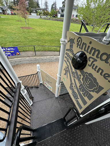 Kelsey Creek Kids Playground is a delightful and unique destination for families, featuring a charming farm-themed playground that kids adore. The park offers a variety of well-maintained equipment, including slides and swings, suitable for children of different ages. A major highlight is the adjacent farm, where children can enjoy seeing animals like chickens and goats, adding an educational and engaging element to their visit. The spacious play area provides ample room for running and active play, complemented by beautiful nature trails for exploration, ensuring a memorable and enjoyable outing for all.