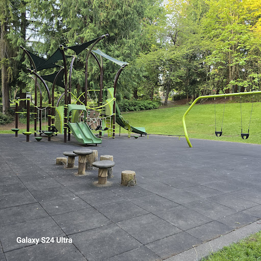 Howarth Park Playground offers stunning views of the bay, making it a beautiful and serene spot for families. The recently renovated playground features soft, rubber matting, ensuring a safe play experience. Kids will love the wide slide that allows multiple children or parents to ride together, alongside smaller slides and bucket swings catering to a range of ages. The park also provides ample shade, green grassy areas for running, paved walking trails, and numerous picnic tables and benches for a comfortable visit.