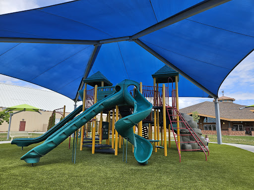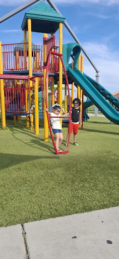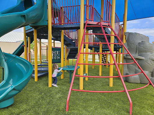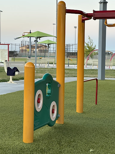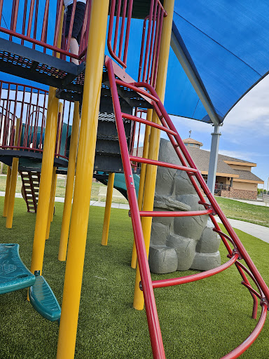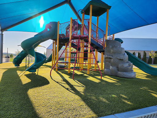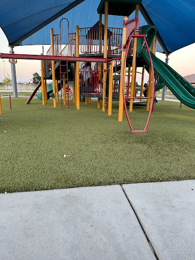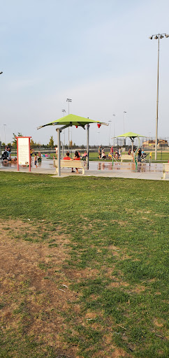 This modern and well-maintained playground is a fantastic spot for families, especially on hot days, thanks to its extensive shade canopies and adjacent splash pad. Children enjoy the variety of play structures, including well-designed slides, all situated on a safe, bouncy rubber and artificial turf surface. It also features picnic tables and easily accessible restrooms, providing a comfortable and enjoyable experience for younger children.