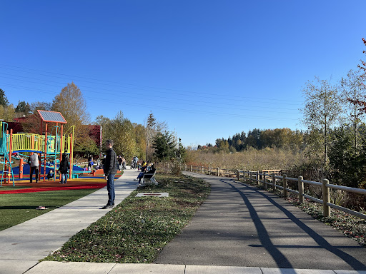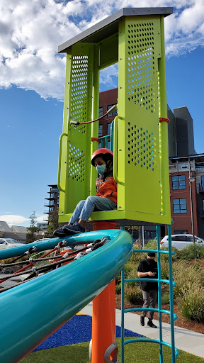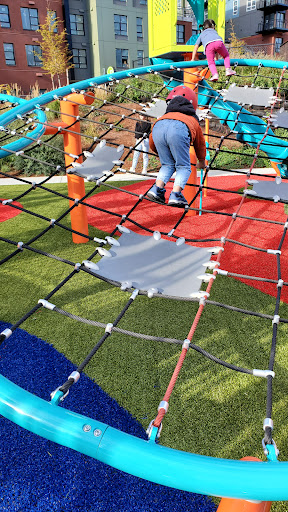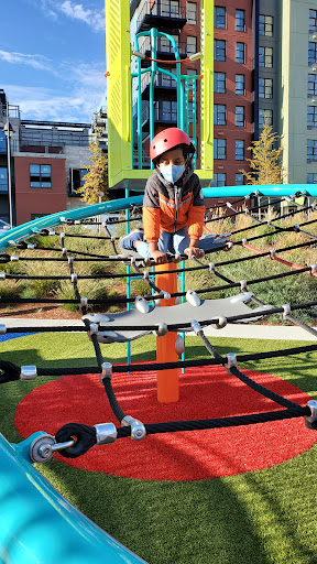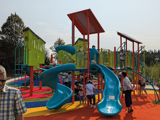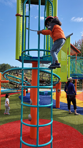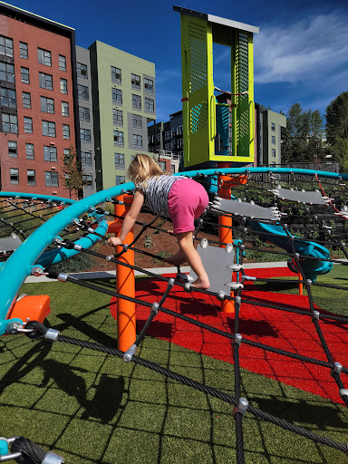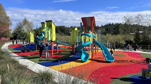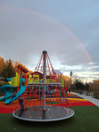 Totem Lake Playground is a thoughtfully designed space, featuring vibrant colors and a soft artificial turf surface that’s gentle underfoot. It offers a variety of fun play stations including multiple slides and innovative climbing structures, appealing to a wide age range from toddlers to school-aged children. The park provides clean, family-friendly restrooms with water bottle fillers and plenty of seating for parents, all conveniently located near shops and dining options.
