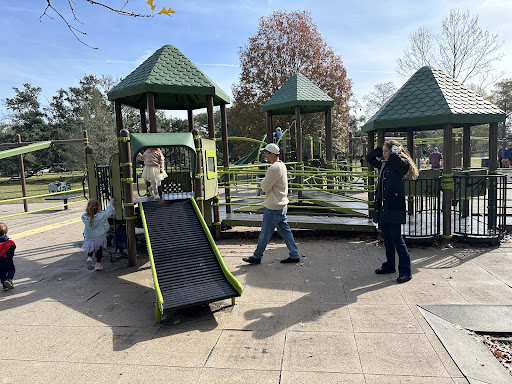 Walnut Street Playground is celebrated for its brand-new, extensive, and highly interactive play equipment, featuring exciting zip lines, varied climbing structures, and musical elements that engage children of all abilities. The playground boasts a bouncy, rubberized surface for safety and is remarkably wheelchair-accessible, making it an outstanding choice for inclusive play. Visitors appreciate the clean restrooms and the overall vibrancy of this large and engaging park.