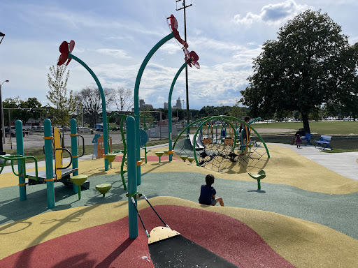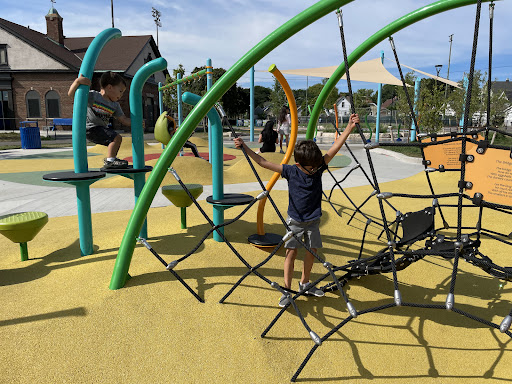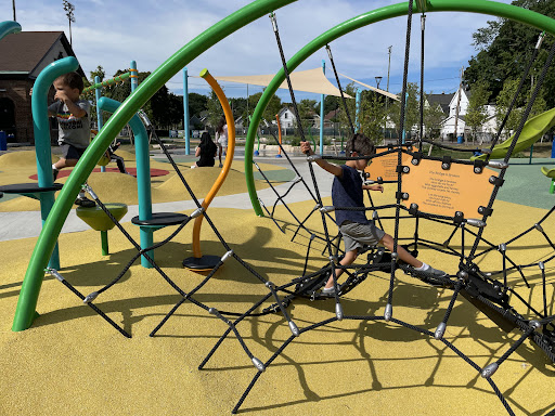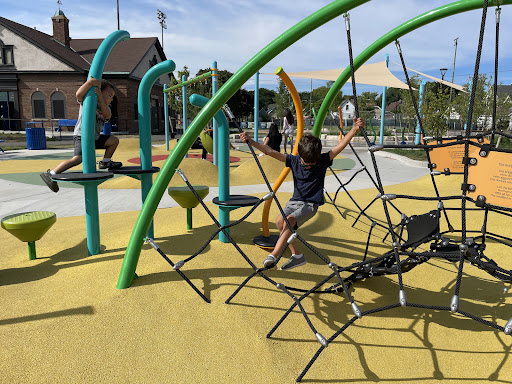Burnham Playground is a recently renovated and expansive park offering a wide array of activities, including slides, swings, a rope climbing obstacle course, and a popular splash pad. It caters to a broad age range, with a dedicated area for toddlers and equipment suitable for older children up to 12. Families also benefit from the adjacent athletic fields for soccer, baseball, and basketball, along with convenient access to food trucks, making it a lively and engaging destination for active play.
