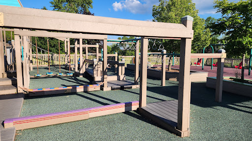 Possibility Playground is a truly exceptional and inclusive park, meticulously designed to cater to children of all abilities, including those with disabilities. It features a wide variety of engaging play equipment, such as slides, swings, monkey bars, climbing structures, and a merry-go-round, alongside unique elements like sensory toys and musical equipment. The playground boasts soft rubber surfacing for safety, is fully fenced with excellent visibility for parents, and offers ample amenities including clean restrooms, picnic tables, benches, and shade. Its location near Lake Michigan and nature trails adds to its appeal, making it a highly recommended destination for families.