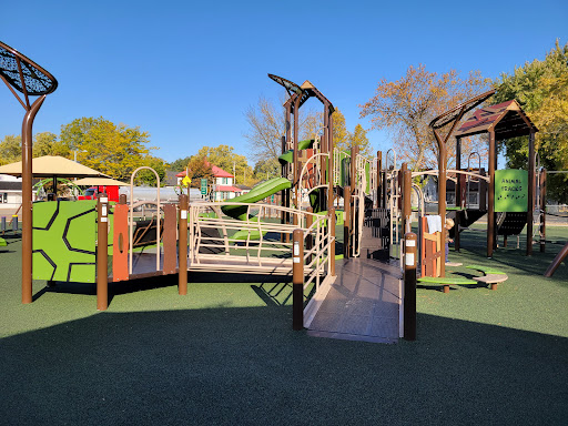Washington Park, now known as ‘Dream Park,’ is a highly-rated, all-inclusive playground offering a fantastic experience for children of all ages. It boasts a modern rubberized safety surface, an exciting splash pad, and a wide variety of play equipment including swings, slides, a zip line, extensive climbing structures, and musical elements. The park is well-equipped with amenities such as ample seating, picnic tables, sun shades, a gazebo, clean restrooms, and convenient parking. Families will also enjoy the preserved old train, adding a unique touch to this wonderful community space.